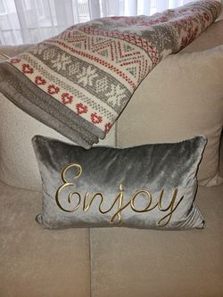 Enjoy! Accent grey pillow Gold Embroidered Christmas Holiday $24Alhambra, CA