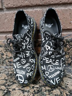 Dr. Martens size 9W 8M 1461 Script [Peace, Love and Freedom] Black Oxford Shoes$60Whittier, CA