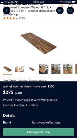 walnut butcher block !save over $100!$275West Windsor, NY