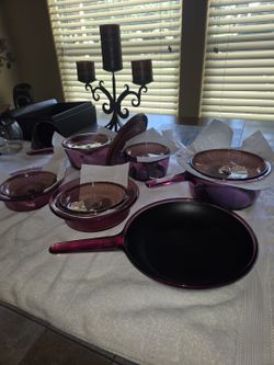 Vintage Pyrex New Vision Cranberry Glass Cookware Set 11pc$250Tulare, CA