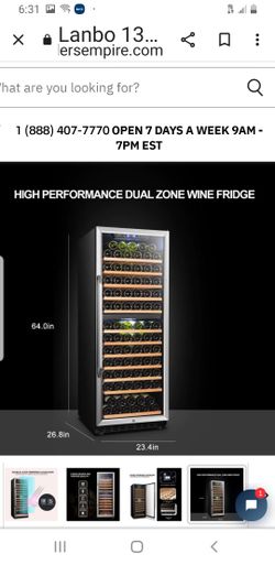 LANBO LW142D WINE COOLER, HOLDS 138 WINE BOTTLES$1,000West Covina, CA