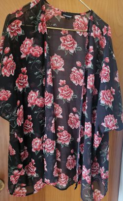 Cover up Kimono Jacket; Size; 2X/3X; Black With Red Roses; WORN ONCE$3Westland, MI