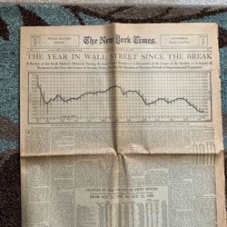 New York Times Stock Market Crash Newspaper$80El Cerrito, CA