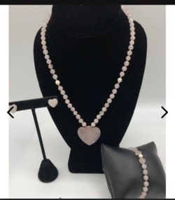 14k Gold Clasp & Bead Rose Quartz & Pearl Necklace, Bracelet, Earring Set $180Los Angeles, CA