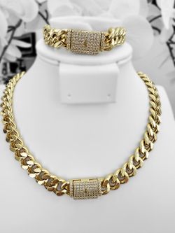 Women 14K Gold Plated Cz Cuban Choker Chain Necklace And Bracelet Set Monaco$55Azalea Park, FL