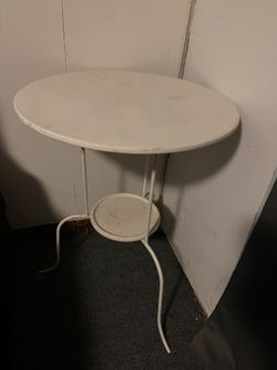 Round white metal side table with lower shelf$20Brooklyn, NY