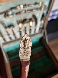 Siam Vintage Mid Century Thailand Bronze/Teak Buddha 144 piece flatware set in Teak Box$325La Costa, CA