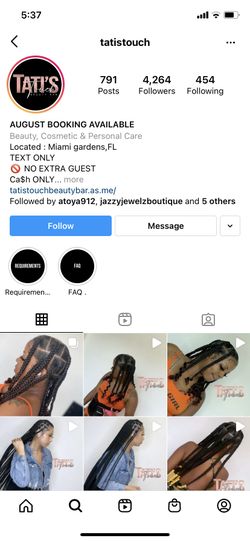 Follow Her on Instagram Tatistouch you need your hair done$0Miami Gardens, FL