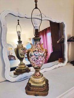 Antique French Victorian Floral Hand Painted Porcelain Table Lamp Gold Accents Kendall Area $150Miami, FL