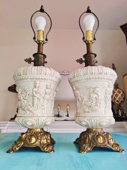 Vintage Pair Hollywood Regency Falkestain Table Lamps Italian Relief Roman MCM Kendall Area $130Miami, FL