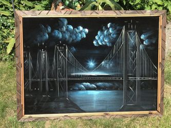 Vintage Black Velvet Art Golden Gate Bridge Framed Blue Large $50Holbrook, MA