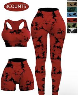Three-Piece Set Women's Tie Dye Print Ruched & Sports Bra & High Waist Leggings & Skinny Shorts Tracksuit Set$35Boynton Beach, FL