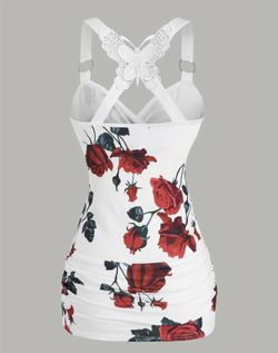 Women's Floral Print Ruched Wrap Contrast Butterfly Lace O-ring Tank Top$38Boynton Beach, FL