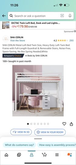 Twin Size Loft Bed /w 5 Inch Memory Foam Mattress $200Edgewood, WA
