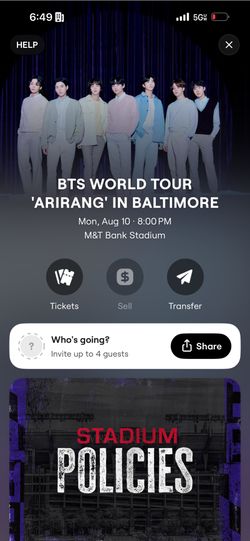 BTS World Tour arirang In Baltimore$350White Oak, MD