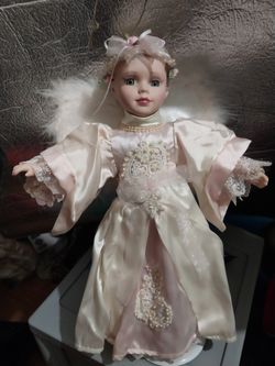 Porcelain Doll Angel With Satin Dress Removable Wings And Stand With Beautiful Lashes$15Victorville, CA
