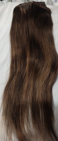 Remy Natural Brazilian Hair Chocolate Brown Color Matches Well With Dark Brown Hair To Add Dimension It's 18 In Long Very Soft With Quality Clips$87Victorville, CA