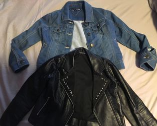 Faux Leather Studded Kids Motorcycle Jacket & Tommy Hilfiger Button Up Jean Jacket Little Girls Size 6/7$25Flint, MI