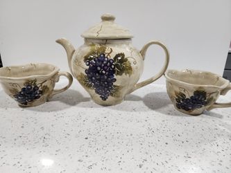 Cabernet Handpainted Teapot & 2 Fluted Rim Tea cups made in China$80Bowie, MD