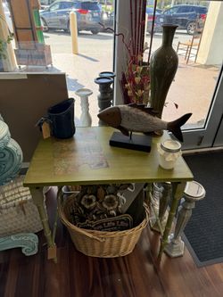 ✨ Coastal Vintage-Style Green Crackle Accent Table | Solid Wood | Decoupage Top UNIQUE✨$95Sarasota, FL