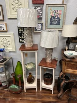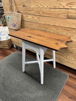 Coastal Cottage Accent Table | Stained Wood Top & White Base — Shabby Chic Boho Furniture$115Sarasota, FL