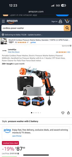 Cordless Power Washer Electric Pressure Washer$60Dallas, TX