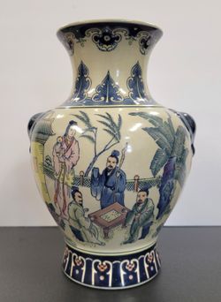 Vintage Chinese Famille Rose Porcelain Vase Elephant Handles Garden Scene 12"$175Dana Point, CA