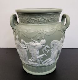 Vintage Sitzendorf Germany Porcelain Urn Vase Sage Green Neoclassical Figures 8"$150Dana Point, CA