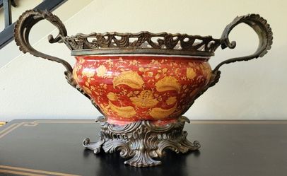 Wong Lee WL 1895 Red Gold Floral Porcelain Bronze Centerpiece Bowl 19" Long$240Dana Point, CA