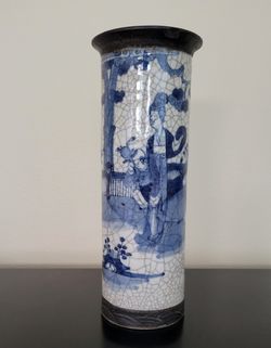 Vintage Chinese Blue White Porcelain Vase Qianlong Mark Crackle Glaze 11.5"$650Dana Point, CA