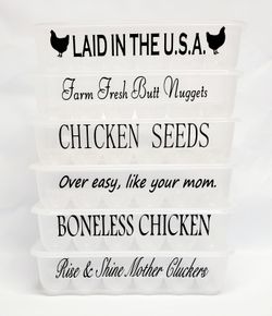 Plastic reusable egg cartons with funny sayings$6El Cajon, CA