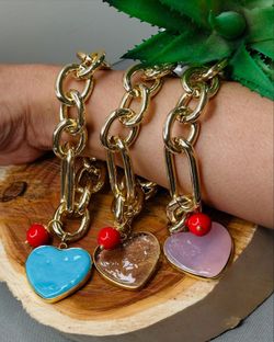 Gold Plated Fe Charm Bracelet, Stacking Bracelet for Her, Heart and Gold Plated Beads, Charm Bracelets for Women$12Lake Worth, FL