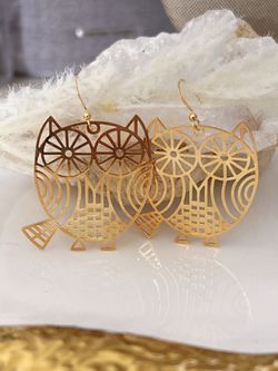 18K Gold Plated Lightweight Filigree Owl Earrings $8Lake Worth, FL