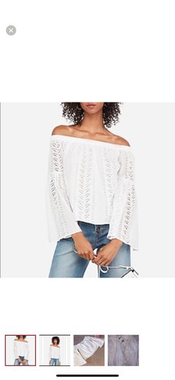 Express Women's White Eyelet 3/4 Bell Sleeve Off The Shoulder Boho Top Size M$30Lake Worth, FL
