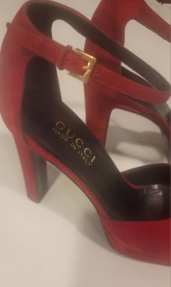 Gucci Women's Red Velvet High Heel Ankle Strap Shoes Size 36 1/2 C$175San Diego, CA