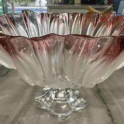 vintage Walther Glass centerpiece bowl in the "Sylvia" pattern, often mistakenly attributed to Mikasa, which features frosted pink tulips on a clear,$10Lake Forest, CA