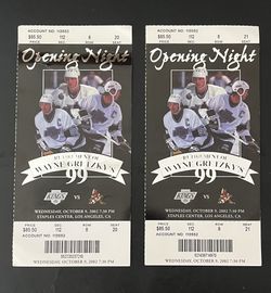 Tickets Retirement Of Wayne Gretzky s #99 Opening Night Staples Center Oct 9 2002$150Thousand Oaks, CA