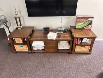 Wood Entertainment Center + Side Tables Set$100New Brunswick, NJ