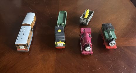 π Set of 4 Thomas the Train motorized engines: Toby, Gullane, Skarloey and Whiff with train cars. $35Kennewick, WA