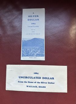 1884-O Morgan Silver Dollar graded as Brilliant Uncirculated with an information pamphlet and envelope titled: βA Silver Dollar 1884 Uncirculated from$150Kennewick, WA