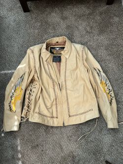 Harley Davidson Leather Fringe Jacket Womens Beige Embroidered Motorcycle $100Santa Ana, CA