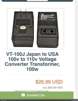 VT-100J Japan to USA 100v to 110v Voltage Converter Transformer, 100w$15San Jose, CA