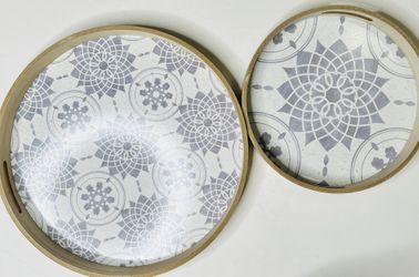 Set of 2 Solid Wood Trays with Cut Out Handles, 11-3/4” & 15-5/8” Outside Diameter $10Chula Vista, CA