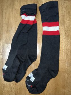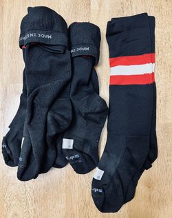 4 Pairs of Drymax Team Sport Over Calf Socks, SDSU Team Issued, Black with Red and White Stripes, Made in USA, Size Large Women’s 10-12,Men’s 8.5-10.5$10San Diego, CA