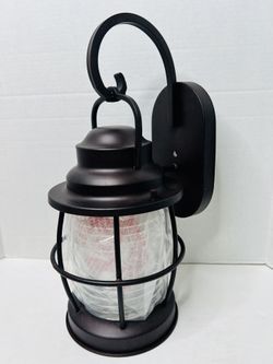 *NEW IN BOX* Hunter Sentry Wall Lantern/ Porch Light, Gilded Copper Finish, Clear Ridged Glass Shade, 16” H x 7” W, 8” Extension, 1-100 Watt (M) Bulb $20Chula Vista, CA
