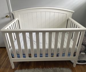 Delaney 4 - in-1 Convertible Crib 46" H × 55" L× 31" W includes 2 mattresses 5’’ H each with cost $90 each and brand new nursery set $175Hauppauge, NY