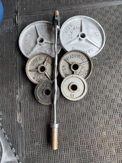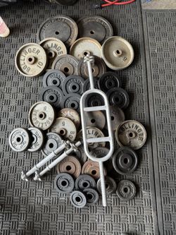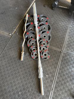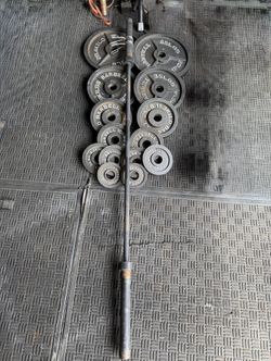 Olympic weights 255lbs total plus 7ft 45lbs bar$260Moreno Valley, CA