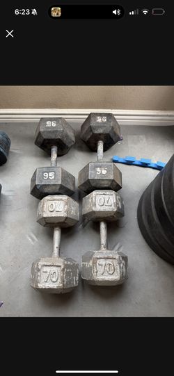 Pair of 70lbs and 95lbs hex dumbbells weights$240Moreno Valley, CA