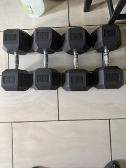 Rubber hex dumbbell weights pairs 85lbs and 95lbs 360lbs total$340Moreno Valley, CA
