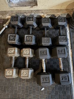 Rubber hex dumbbells pairs for 100,90,80 weights 570lbs total$500Moreno Valley, CA